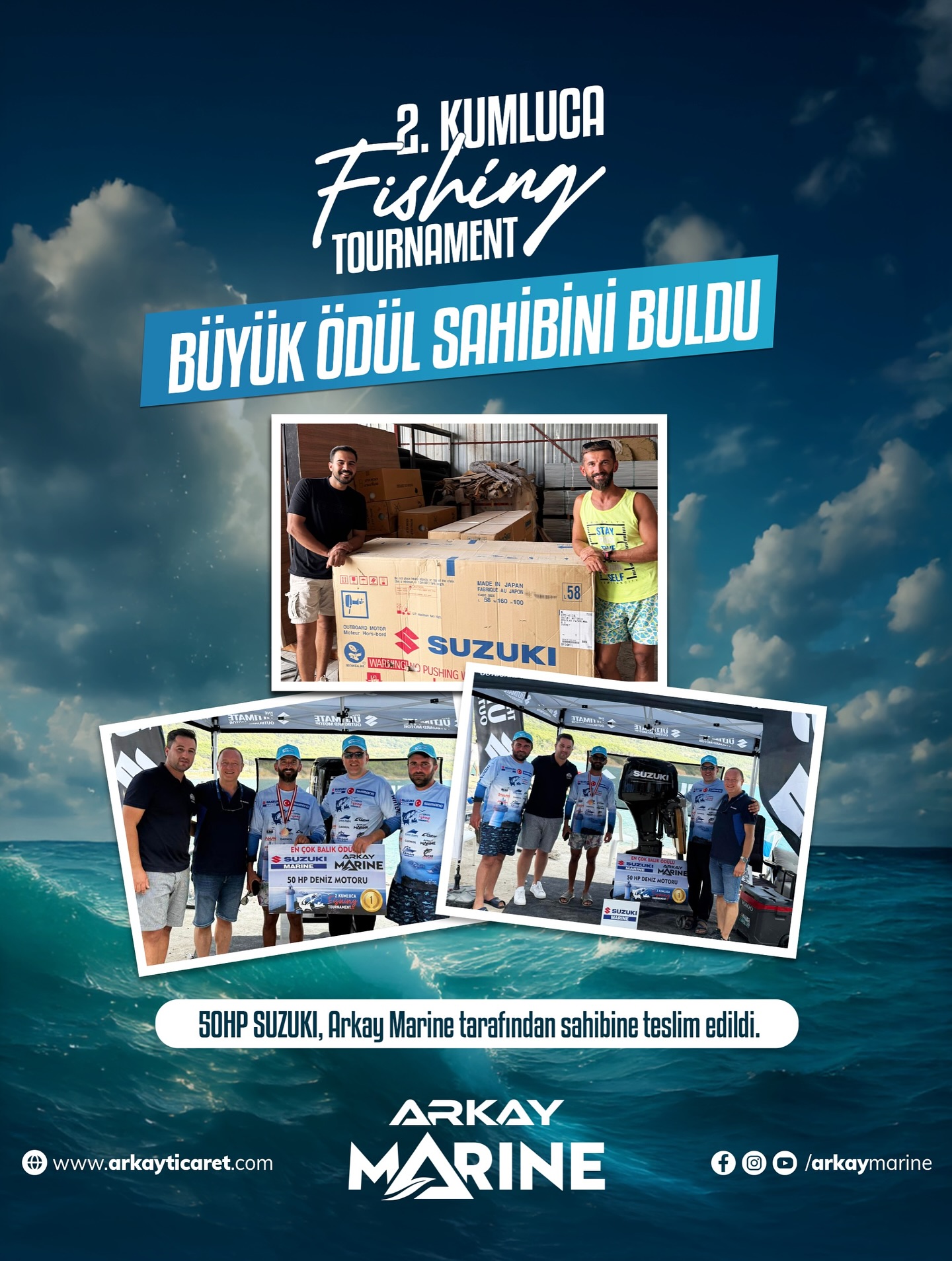 Turnuvanın en dikkat çeken destekçilerinden biri ise Arkay Marine oldu. Denizcilik sektöründe kalite ve güveniyle öne çıkan firma, bu yıl büyük ödül olarak 50HP Suzuki deniz motorunu turnuvaya kazandırdı. Dereceye giren yarışmacı ödülünü Arkay Marine’in temsilcilerinden teslim alırken, organizasyona değer katan bu destek büyük takdir topladı.